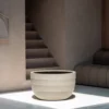 De Bordo New Egg Pot Low in de kleur Sand is een stijlvolle plantenbak met ronde vorm, die dankzij zijn lage, afgeronde design perfect is voor zowel royale kamerplanten als compacte sierheesters. De combinatie van verfijnde structuur, natuurlijke kleurstelling en de kenmerkende, gedetailleerde rand geeft de Bordo-serie een rustig maar uitgesproken karakter, dat goed past in zowel moderne als meer natuurlijke interieurs en tuinen.