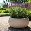De Terreno Low Balloon is een elegante plantenschaal die zich kenmerkt door een luxe, aardse uitstraling. Dankzij de organische, ronde vorm en de lichte kleur Sand vormt de Terreno Low Balloon een rustig en natuurlijk element dat zowel in een interieur als in de tuin uitstekend tot zijn recht komt. De lage vorm maakt deze plantenbak bijzonder geschikt voor op een tafel, een brede zuil of als sfeervol accent op het terras.