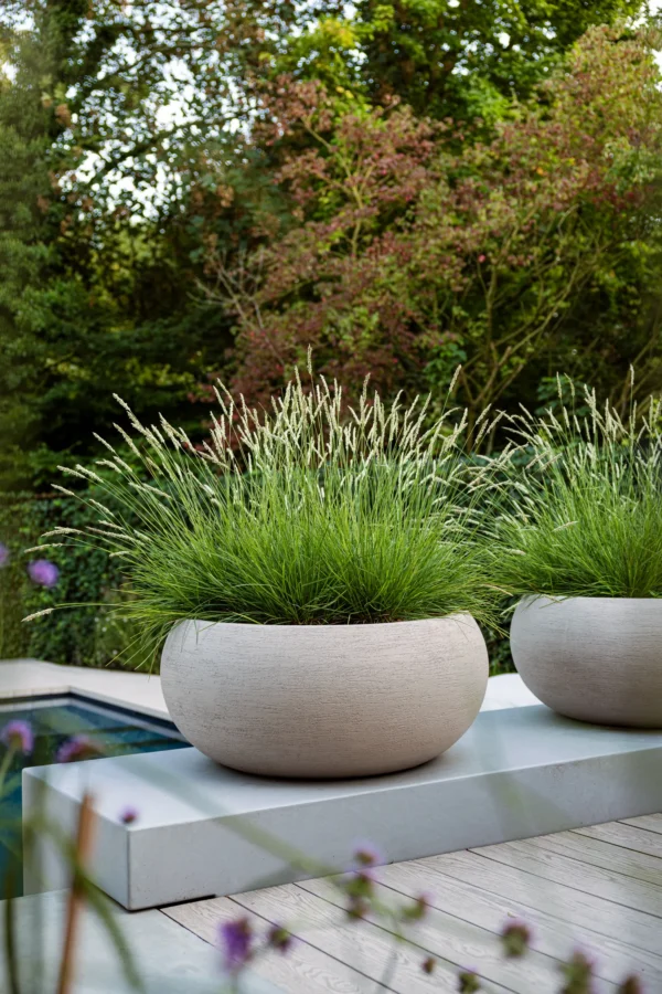 De Terreno Low Balloon is vervaardigd uit een sterke basis van polyester versterkt met steenpoeder, afgewerkt met natuurlijke klei met een licht reliëf. Deze materiaalkeuze geeft de schaal de authentieke uitstraling van zwaar aardewerk, maar met de praktische voordelen van kunststof: hij is licht van gewicht, duurzaam en onderhoudsvriendelijk. Zoals kenmerkend voor de collectie van Luca Lifestyle is de Terreno Low Balloon handgemaakt en volledig weerbestendig. De plantenbak is bestand tegen vorst en UV-straling, waardoor hij het hele jaar door buiten kan blijven staan zonder aan kwaliteit of kleur in te boeten.